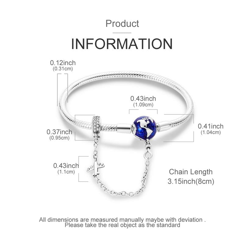 Pandora like Sterling Silver Charm Bracelet | Blue Earth Globe & Airplane | Travel Gift for Women