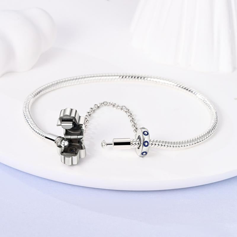 Pandora like Evil Eye Bracelet | Hamsa Hand Charm Safety Chain Bracelet – Sterling Silver with Blue Evil Eye Protection Bead